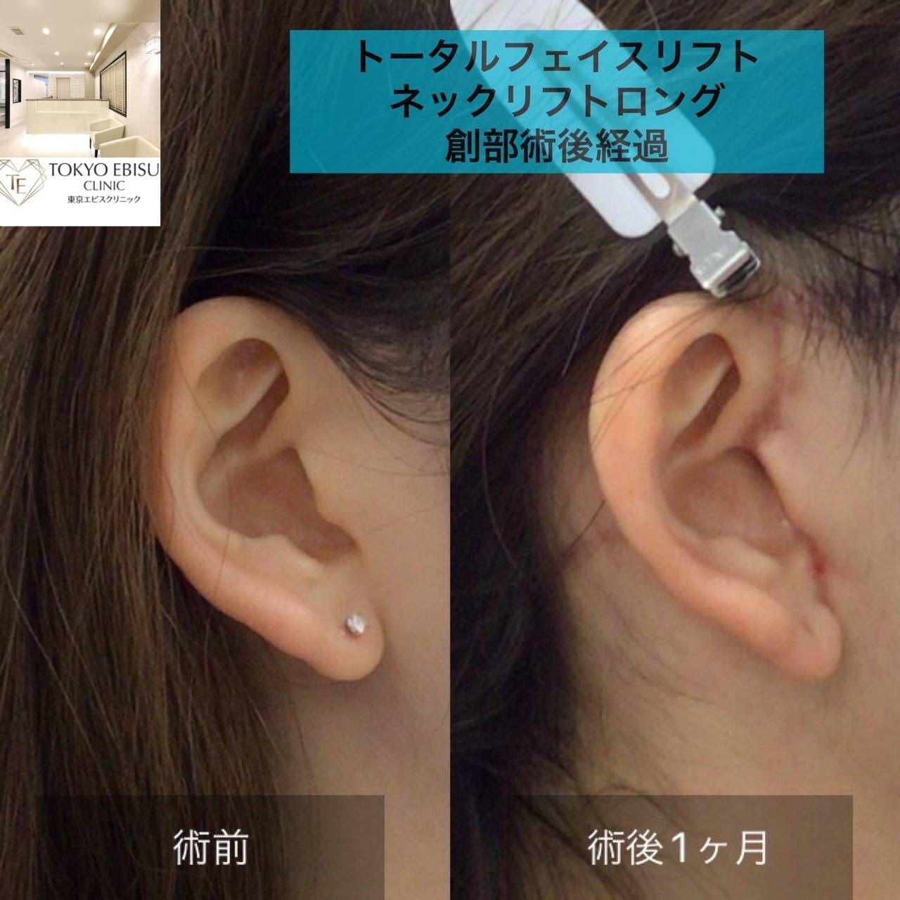 トータルフェイスリフト、ネックリフトロング創部術後経過)