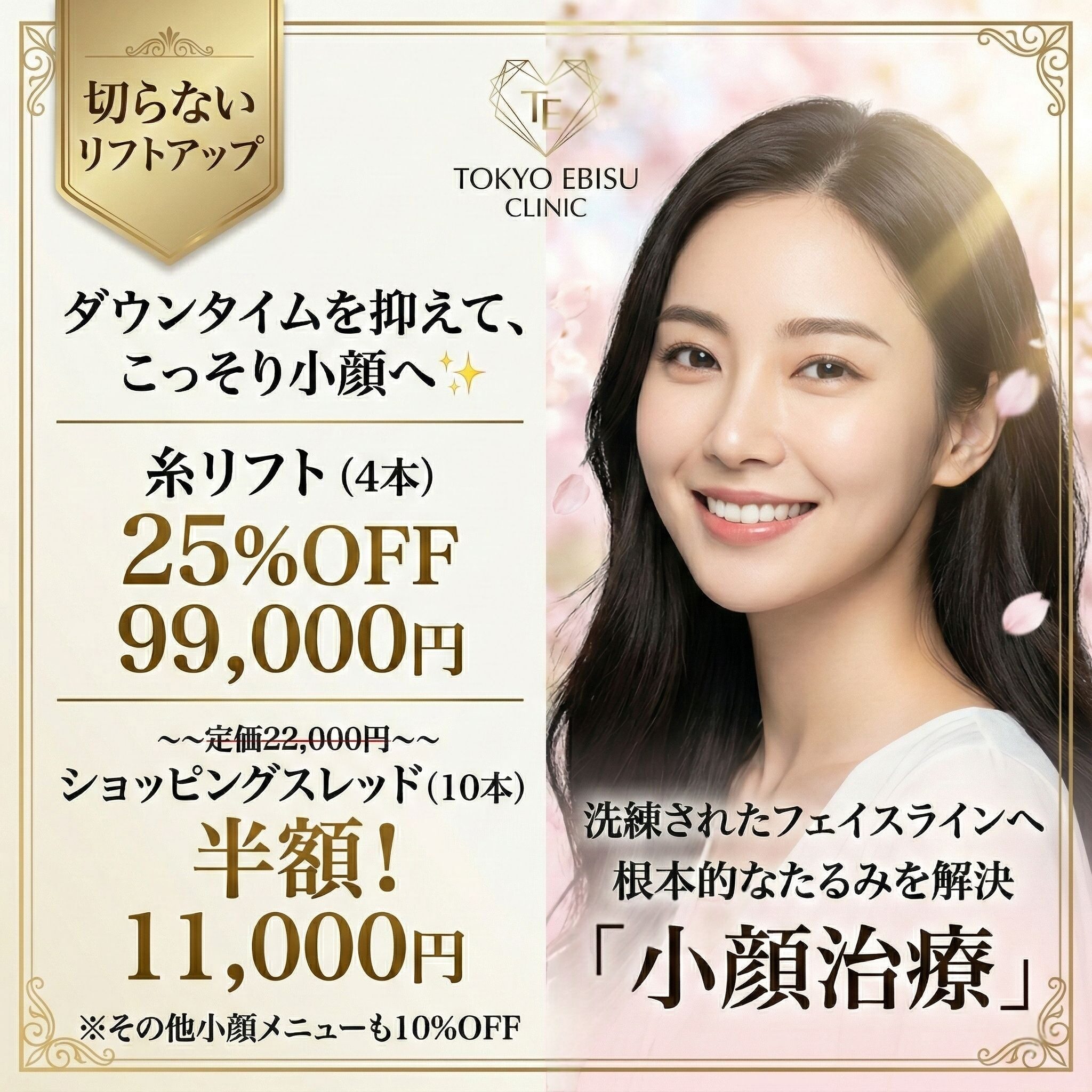 お得なキャンペーン 初回限定価格 その他のキャンペーン レーザートーニング 低出力のレーザーを均一に照射し、肝斑や根深いくすみを改善する治療です。肌への刺激を抑えつつメラニンを段階的に排出。回数を重ねることで、透明感のある明るい肌質へ導きます。 マッサージピーリング 高濃度TCAが真皮層まで浸透し、コラーゲン生成を促進。肌を剥離させずにハリやツヤ、小じわを改善します。初回限定価格で、即効性のある潤いと弾力をぜひご体感ください。 サリチル酸マクロゴールピーリング 皮脂詰まりやニキビ、毛穴の開きを改善。サリチル酸が角質を優しく除去し、肌再生を促します。マクロゴール配合で痛みや赤みが少なく、初回の方も安心の肌に優しい治療です。 レチノールピール レチノイドの力で肌のターンオーバーを正常化し、小じわやシミ、皮脂トラブルを改善。コラーゲン生成を促し、内側からハリのある若々しい肌へ導く、浸透型のピーリングです。 切開リフト 3月限定メニュー 小顔治療 3月限定メニュー 二重整形 3月限定メニュー